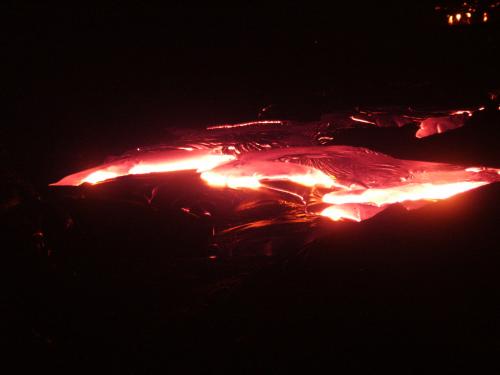 avons pu observer une coulée de lave se deplaçant vers la mer. La route