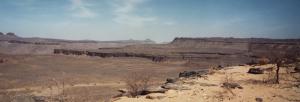 Nous repartons en en 4x4 pour la passe Amogiar où nous descendons du plateau. Le désert de sable fait place au désert de pierre. Nous abordons les magnifiques paysages des falaises qui nous surplombent. La Mauritanie a ceci de grandioses que nous passons d'un univers à un autre dans des distances relativement courtes. Le cadre qui nous entoure change chaque jour et le désert est loin de l'image d'une monotonie uniforme que j'avais à l'esprit avant de partir.